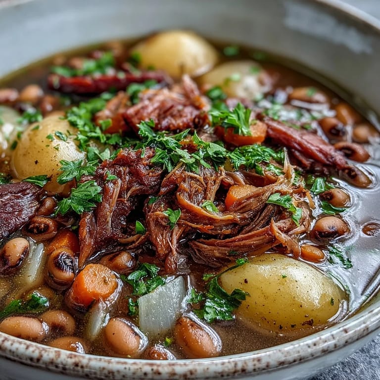 Save My grandmother's kitchen smelled like this stew on New Year's Day—that unmistakable combination of smoked ham and simmering peas that meant good luck was coming. I'd watch her pull those ham hocks from the broth, shred them with two forks, and tell me that a proper stew needs time and patience, nothing rushed. Years later, I found myself making this same dish on a cold January evening, and suddenly I understood why she'd always insisted on doing it her way. The magic isn't in fancy ingredients; it's in letting flavors build slowly while you move about the kitchen doing other things, checking in every so often. This is the kind of stew that fills your home with warmth before it ever touches your mouth.
