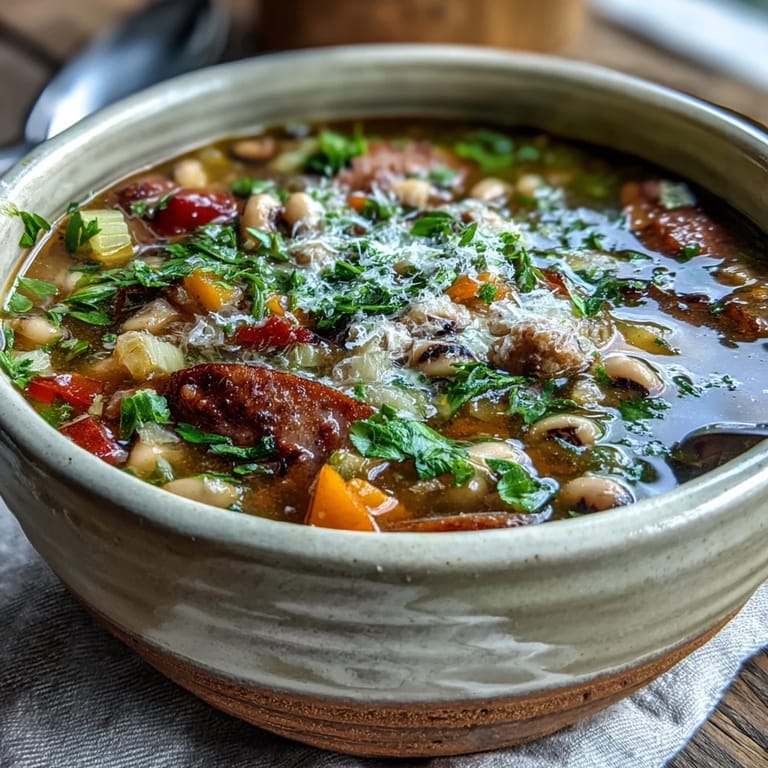 Save My neighbor stopped by one chilly evening with a container of homemade black-eyed peas, and I realized I had exactly what I needed to turn it into something more substantial. While the soup simmered, the kitchen filled with this earthy, savory warmth that made everyone who walked past ask what was cooking. That night taught me that sometimes the best meals come from improvisation and whatever's already in your pantry.