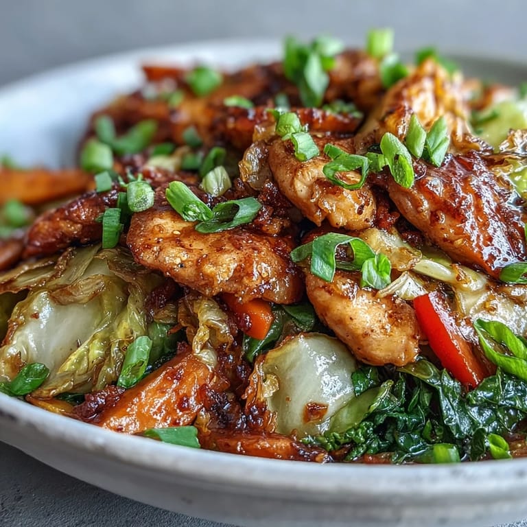 Save The sizzle of chicken hitting a hot wok never fails to wake up my kitchen. I stumbled into this stir-fry on a Tuesday night when my fridge was down to half a cabbage, some sad carrots, and chicken I needed to use. What started as a panic dinner became the meal my family now requests by name. The sauce, sweet and salty and just a little tangy, clings to every shred of cabbage like it was always meant to be there.