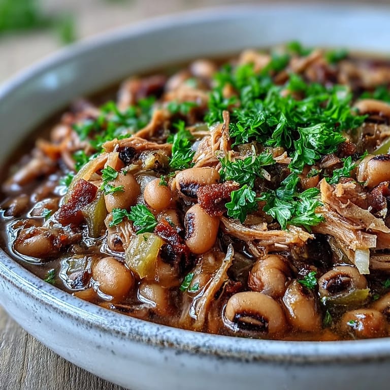 Save My grandmother used to say that black-eyed peas on New Years Day weren't just food—they were insurance against a year of bad luck. I didn't fully understand it until I started cooking them myself, watching the dried peas plump up into something tender and alive, absorbing all that smoky pork flavor until they tasted like tradition itself. There's something almost meditative about stirring a pot of these for an hour and a half, the kitchen filling with that warm, earthy smell that somehow feels both ancient and comforting.
