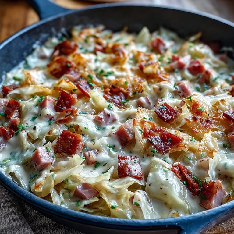 Save There's something about a skillet meal that feels like a small victory, especially when you're staring down a weeknight with nothing but good intentions and an empty stomach. I discovered this creamy cabbage and ham combination during one of those evenings when my fridge was half-empty and my energy was even lower—no complicated mise en place, just a head of cabbage, some ham from Sunday dinner, and a few dairy staples that happened to be calling my name. Twenty minutes later, something magical happened in that skillet, and I realized I'd stumbled onto one of those meals that tastes far more indulgent than it has any right to be.