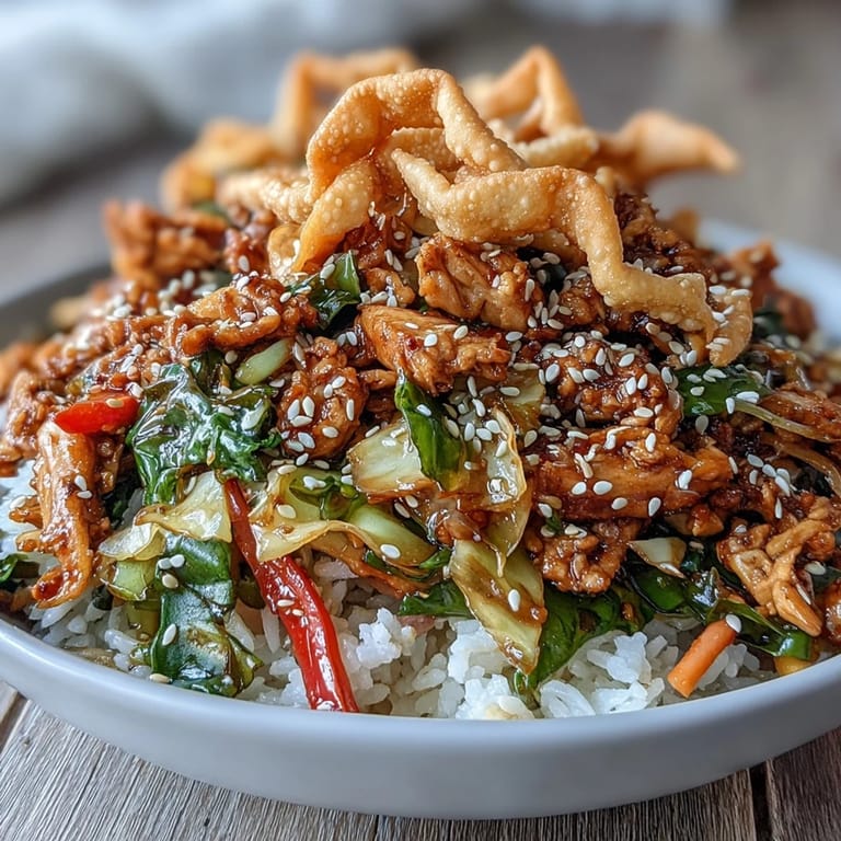 Save My neighbor handed me a takeout container of egg rolls one Tuesday evening, and I ate them standing at my kitchen counter like someone who'd forgotten how to sit. The crispy exterior, the savory chicken and cabbage inside—it was so good I found myself staring at the empty container wondering if I could justify ordering more. Then it hit me: what if I deconstructed the whole thing into a bowl? I could skip the frying, keep the crisp, and serve it over rice for something that felt lighter but tasted just as indulgent.