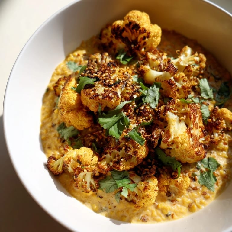 I've experimented with different vegetables in the roasting step and butternut squash works beautifully too. Sometimes I add a handful of baby spinach right at the end, letting it wilt into the dhal for extra nutrition. The key is keeping that spice blend consistent because it's what ties everything together.
