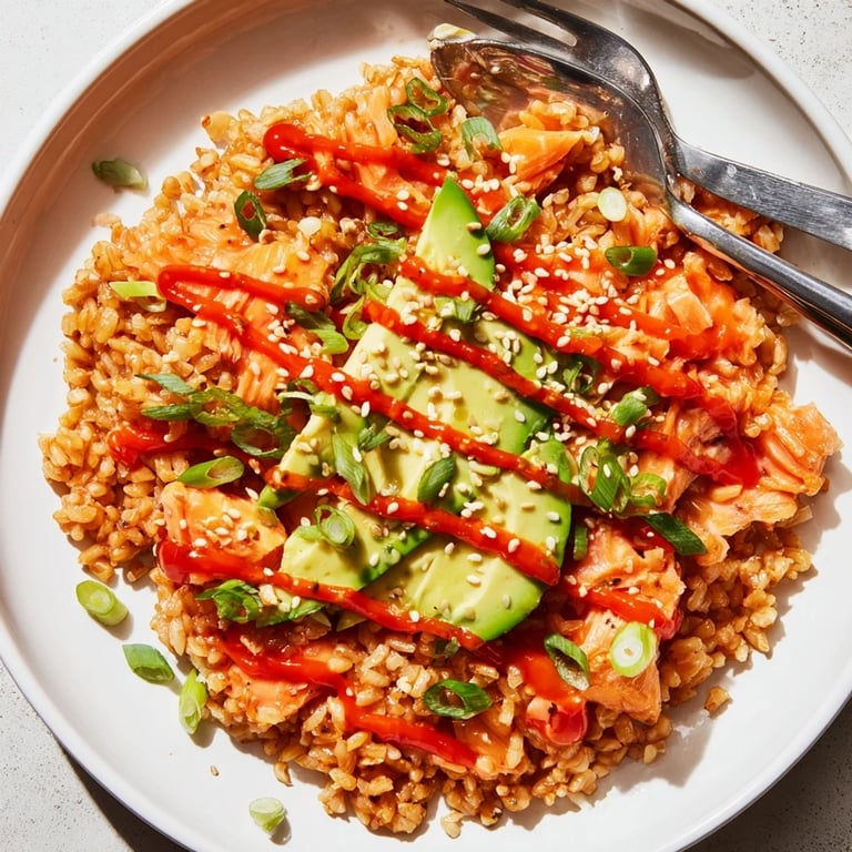 This bowl is incredibly forgiving. I've made it with canned salmon in a pinch, and my friend swears by using cooked shredded tuna instead. The real magic is in the warm, seasoned rice with that cool avocado contrast.