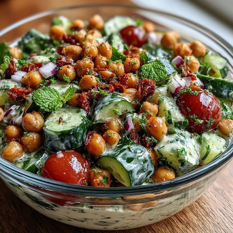 I made this for a picnic last June, packing the dressing separately so it wouldn't wilt in the car, and watching people go back for seconds felt like a small victory. My friend Mark, who normally avoids salads like they personally offended him, asked if there was chicken hiding in there somewhere. When I told him it was just chickpeas and vegetables, he looked genuinely surprised, and that moment sealed it for me—this salad converts people.