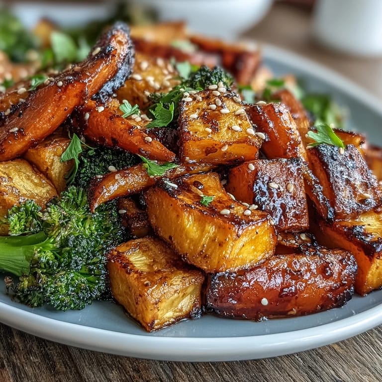 Save My neighbor dropped off a jar of white miso paste one autumn afternoon, insisting I'd love it in something besides soup. That evening, I stood in my kitchen staring at a tray of root vegetables, wondering what she meant, when the idea struck me to blend it with butter and roast everything together. The moment those caramelized edges caught the oven light, their edges turning deep gold and almost crispy, I understood completely.