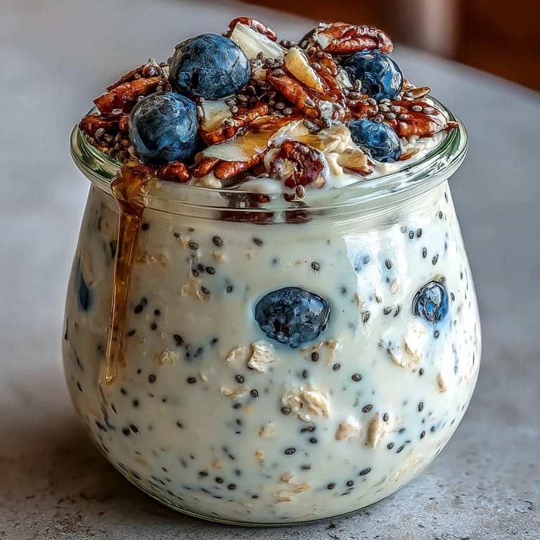 Save The magic of overnight oats lies in patience. Old-fashioned rolled oats are sturdy enough to soak up the milk and yogurt without turning to mush, while chia seeds swell and create a luscious, pudding-like texture that feels indulgent yet wholesome. Blueberries add a burst of natural sweetness and antioxidants, and a drizzle of honey or maple syrup ties everything together. Prepare these jars on a Sunday evening and your weekday mornings will feel a little more peaceful.