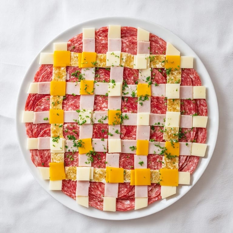 The real joy of this appetizer is that it's a template, not a rule. I've made versions with roasted red pepper squares slipped in for color and sweetness, and once I added cubes of fresh mozzarella for a creamy surprise. Your palate and what you have on hand should guide you—the point is the arrangement, the colors, and the mustard lines that tie it all together. Think of it as painting with ingredients instead of following a strict recipe.