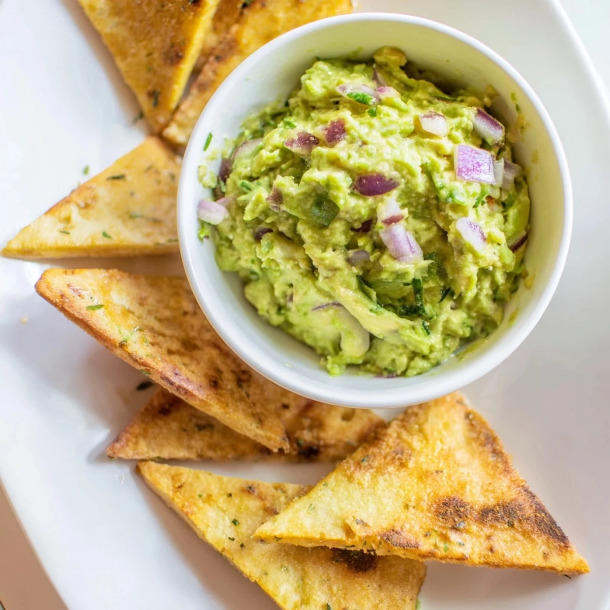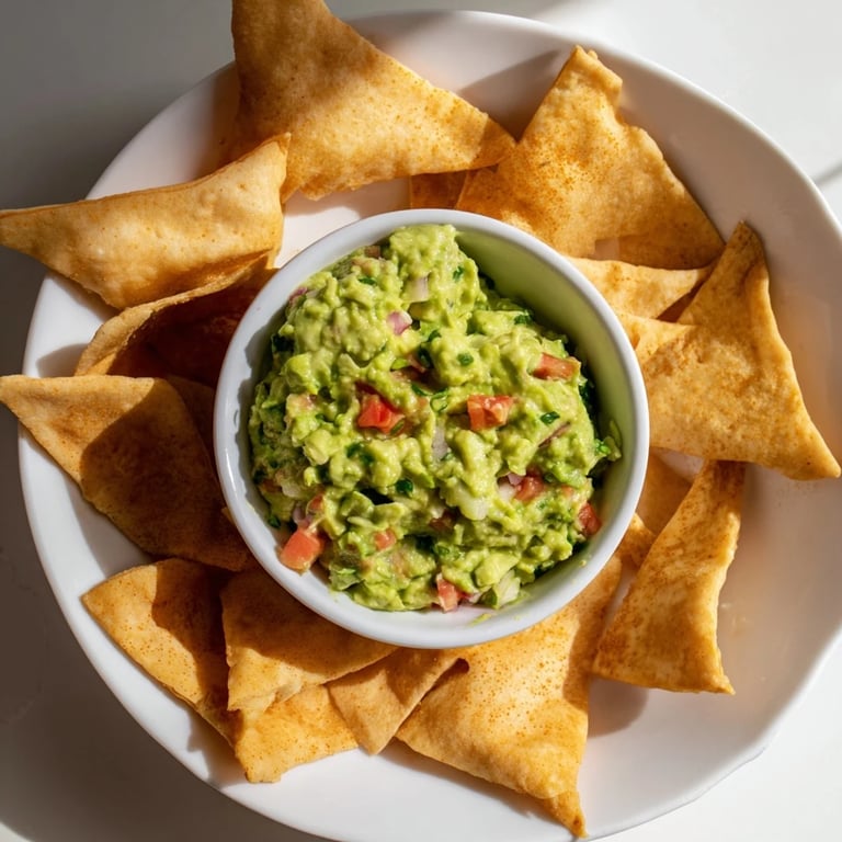 This bowl of pita chips with guacamole is a quick and satisfying snack that impresses every time.