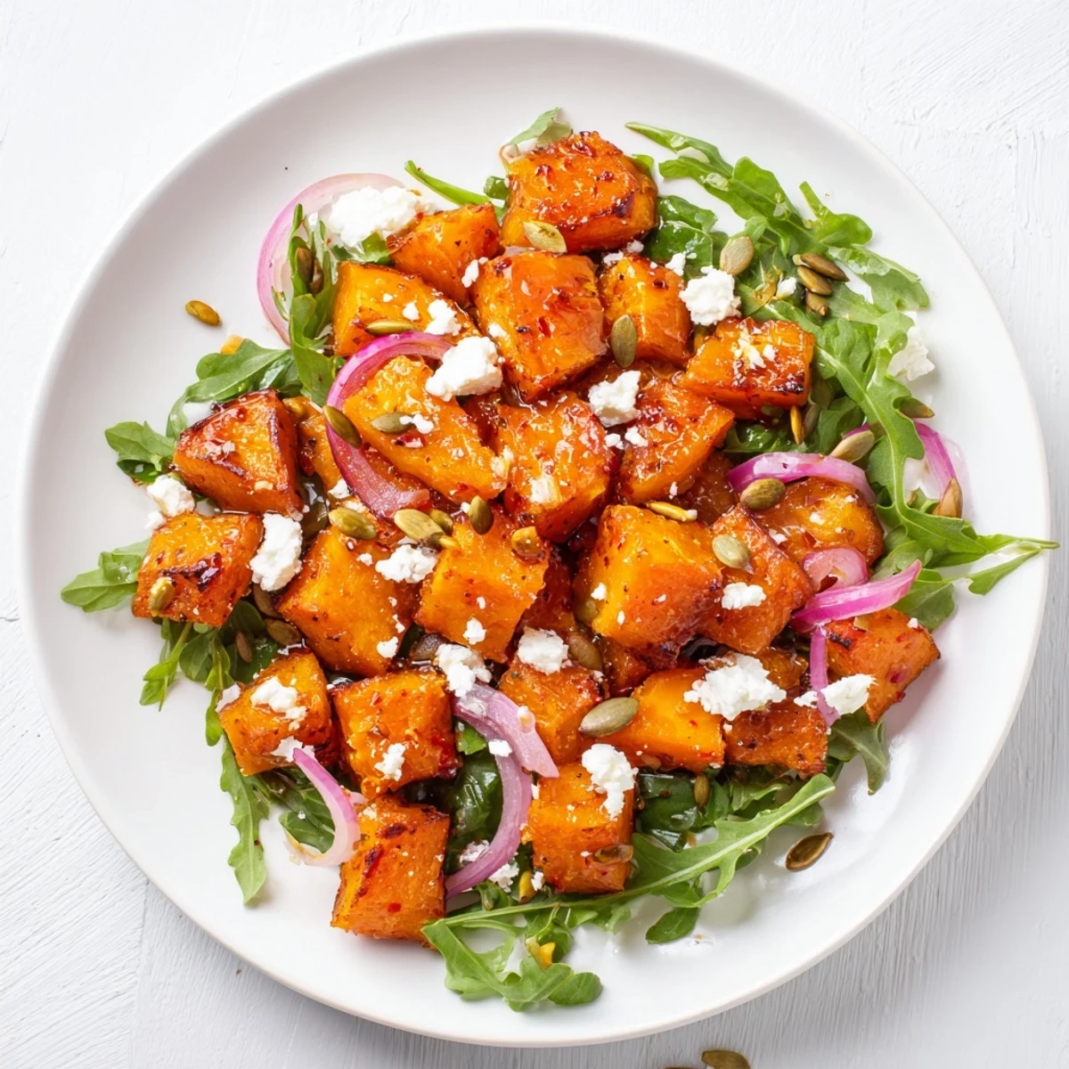 Ive swapped the arugula for baby spinach when I wanted something milder, and Ive added cooked quinoa when I needed the salad to be more filling. A handful of toasted pecans or walnuts brings a woody richness that plays beautifully with the sweet potatoes. If you want to make it a full meal, grilled chicken or chickpeas fit right in without changing the spirit of the dish.