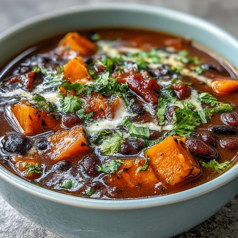 Partially pureed for creaminess while retaining some chunks of sweet potato and beans for a hearty bite.