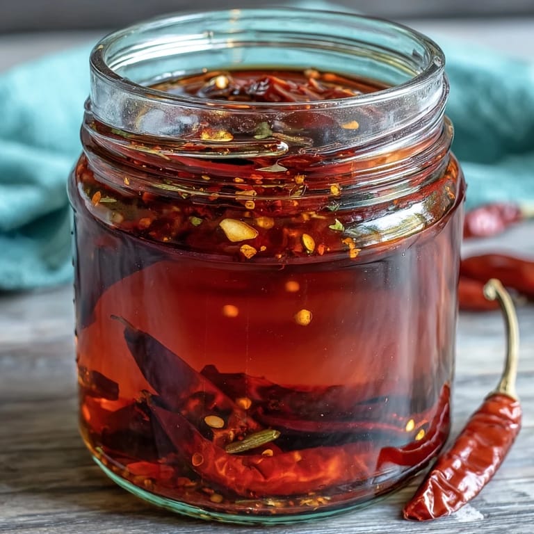 Save Bring the fiery heat of Southern Italy to your kitchen with this homemade Spicy Calabrian Chili Oil. This aromatic infusion combines the bold kick of Calabrian chilies with golden garlic and fragrant herbs, creating a versatile condiment that enhances everything from simple pasta dishes to gourmet pizzas.