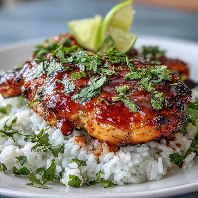 Save This dish brings together influences from both American comfort food and Asian cuisine, creating a fusion that feels both familiar and exciting. The maple-sriracha glaze develops a beautiful caramelization in the oven, while the coconut milk infuses the jasmine rice with a subtle sweetness that balances the heat from the chicken. Fresh cilantro and lime brighten everything up, making each bite vibrant and memorable.