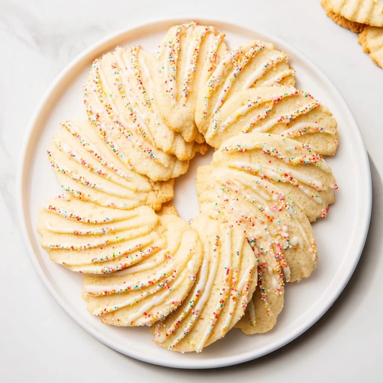 Save Delicate, buttery spritz cookies arranged in a beautiful layered fan shape—perfect for the holidays and a festive addition to any cookie tray.