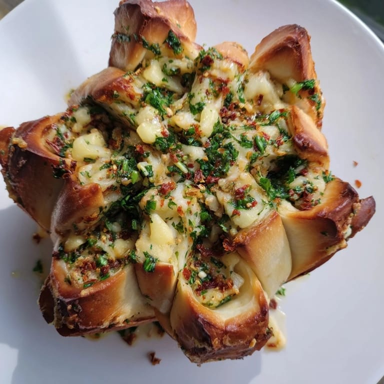 Save A festive, pull-apart bread shaped like a star, filled with aromatic garlic butter, herbs, and cheese—perfect for holiday gatherings.