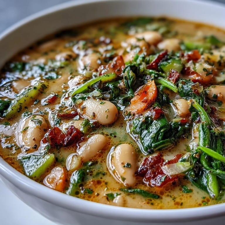 Save The first time I made this Tuscan White Bean and Spinach Soup, the aroma drifting out from my slow cooker made me pause mid-chore—the mingling scents of garlic and thyme felt as though the kitchen was inviting me to slow down. I hadn't planned on soup that day; I simply needed comfort after a messy week, and the beans and vegetables left in my pantry were calling out for transformation. Stirring everything together, I was surprised by how the gentle burble of the slow cooker began to feel like reassurance in the background. Between tastes and tweaks, I realized how a dish built from simple staples can turn the afternoon into something quietly special. Even now, I smile remembering that spontaneous soup and how quietly delicious it turned out to be.
