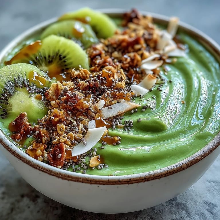 - Arrange kiwi slices in a small arc, scatter coconut flakes across, sprinkle hemp seeds evenly, add a small handful of granola for crunch, and finish with a few mint leaves if you have them. This isn't just decoration, it's creating different flavor and texture zones so each bite feels special.